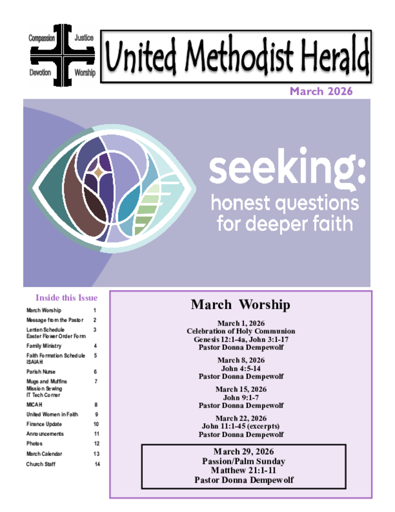 Read our most recent newsletters. Our monthly newsletter, the Herald, is overflowing with stories about the life of our church. Check out updates from many of our active ministries and stay current on upcoming events.